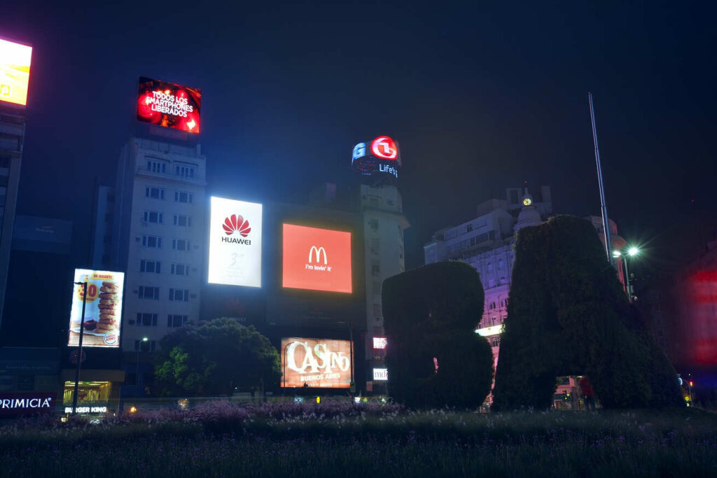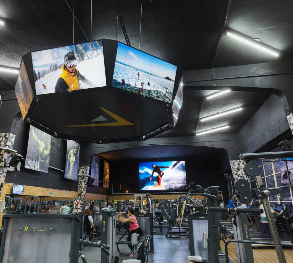 Las pantallas LED fijas, o “Fixed LED screens”, están diseñadas para instalaciones permanentes o de larga duración. Son comunes en lugares como estadios, fachadas de edificios, centros comerciales y pantallas publicitarias exteriores. Sus características incluyen: