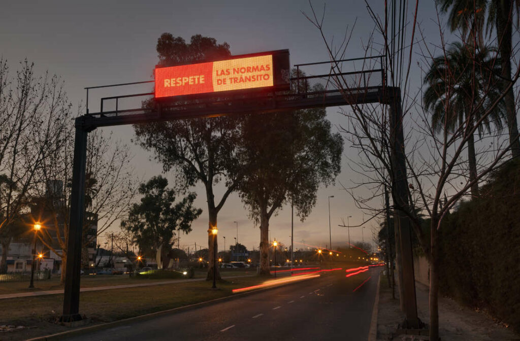 Desarrollamos dispositivos inteligentes con tecnología LED para control vehicular en tiempo real, brindando logística y soporte técnico a acciones gubernamentales de educación y seguridad vial. Sistematizamos y digitalizamos la señalética en calles, rutas y autopistas con el objetivo de aumentar la seguridad tanto de los conductores como de los peatones.