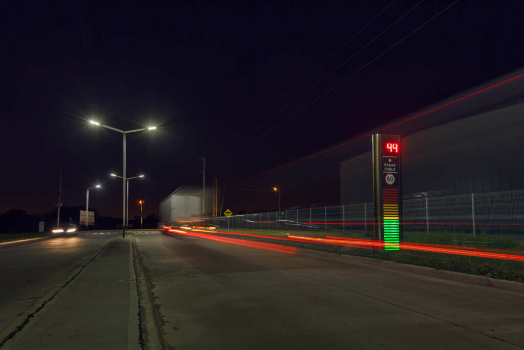 Ideado para generar conciencia de la velocidad a la cual se transita en cualquier tipo de calle, ruta o avenida. Cuenta con vúmetro de velocidad, que se sincroniza con un display digital de tres dígitos y se configura dependiendo de los límites de velocidad de cada lugar.