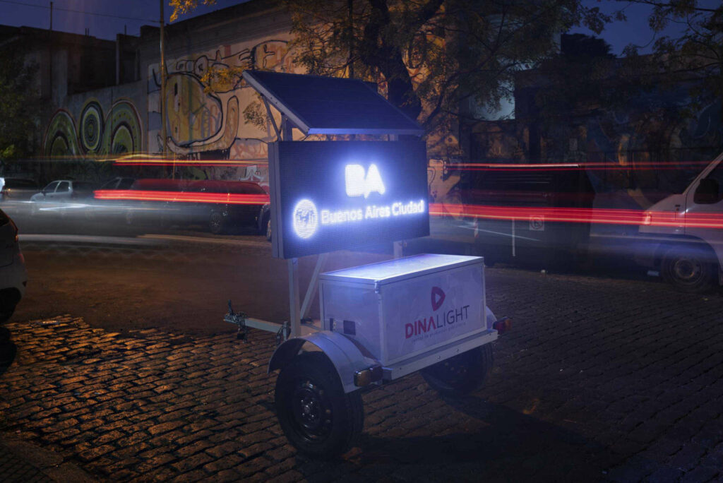 Equipo móvil con pantalla LED full color o monocromática, con actualización inalámbrica de contenidos. Cuenta con paneles solares y batería para uso autónomo con más de 72 horas.
